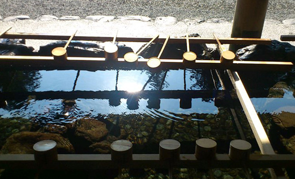 手水舎に朝日が写りこんで、綺麗なのでした。心まで晴れ渡る気持ちになりました。いやー清々しい!!