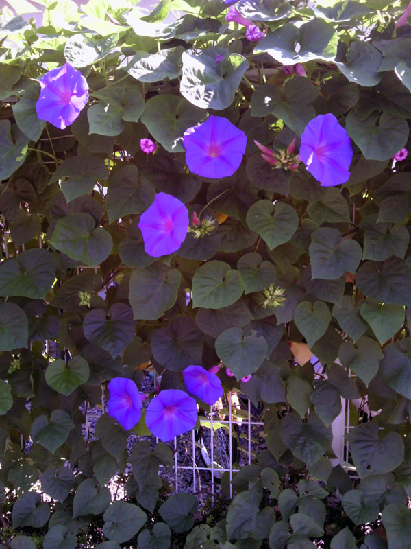 朝顔がきれいだったので写真を撮ってみました。こうやって見るとハレーションを起しているように写って、この何倍もきれいでしたがなかなか伝えられないものです。