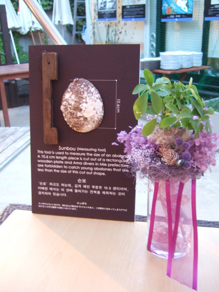 今年の夏、韓国のヨス万博での海女のライフスタイルや海女漁の歴史などのパネル展示を会場に再現しています。