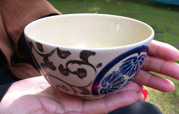 私もお側で拝見できました。徳川家葵の紋入りの立派なお茶碗でした。