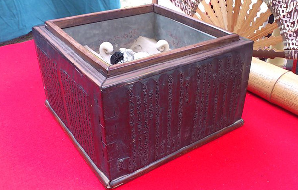 瓶かけ用の風炉は、なんと版木を箱に使って作られていました。これは版画部のM1さんに報告せねば!!
