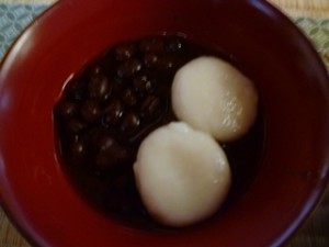 食事の後は主菓子のお善哉。これもW婦人のお手製です。黒砂糖味のお善哉。今回水屋仕事をほぼお任せして担当してくださいました。