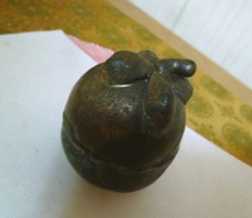 待ちあい席には、カイユさん作のマンゴスチン。渋い釉薬具合がまたいい感じでしたね。