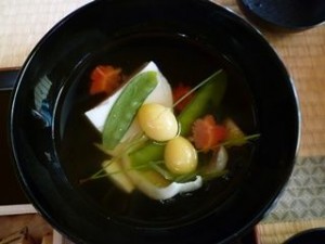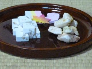 碗ものだけはW婦人に作っていただきました。吹き寄せ風な秋の彩りで、落花生のお豆腐(ジーマミー豆腐)が入っています。