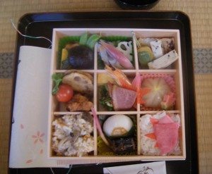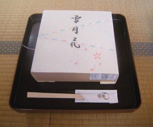食事は名古屋の八百彦のお弁当をいただきました。はじめていらっしゃる人もいたので、今回は茶事などの細かなお作法はなく水屋仕事の人も皆が席に入って気軽な雰囲気で会話しながら食事をしました。