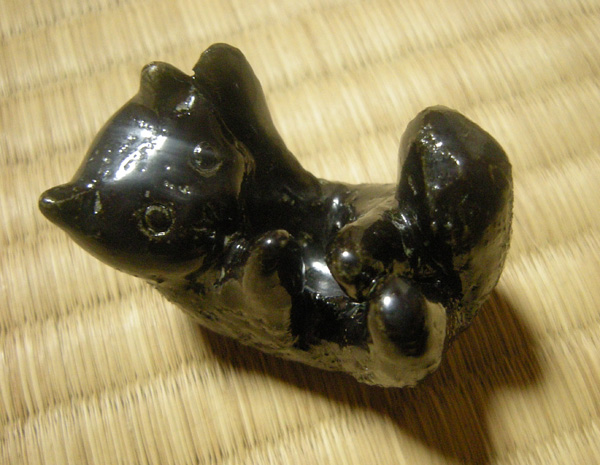 ふた置きは、「猫遊び」。コピ猫(M3号)が柄杓で遊んでる姿をイメージしてつくりました。