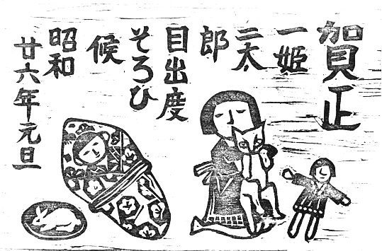 実家に帰って探し物をしていた時、父親のこんな年賀状の版画が出てきました。