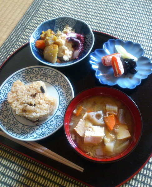この日は豪勢な定食になりました。皆でお膳を運び食事タイムです。とてもヘルシーな定食です。
