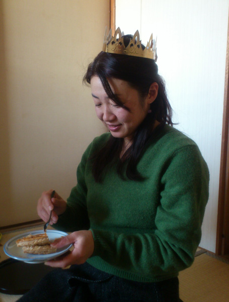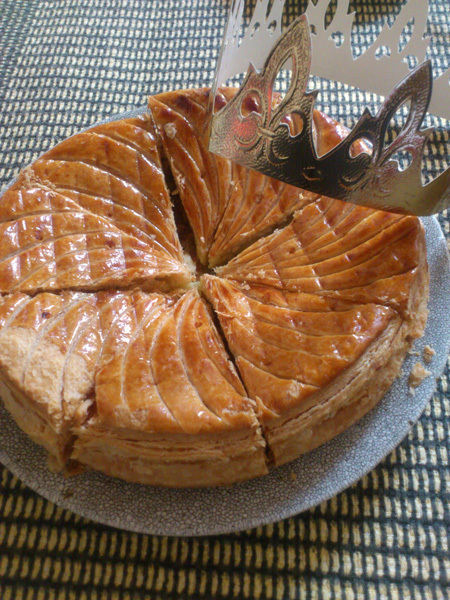 このケーキの中に陶器のフェーブがひとつ入っていて、それを当てたひとは王様になれるという。
