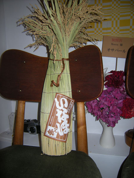 これは東北のお酒のパッケージで瓶を稲穂で包んでありました。友人が開店祝いで頂いたものを写真撮らせてもらいました。