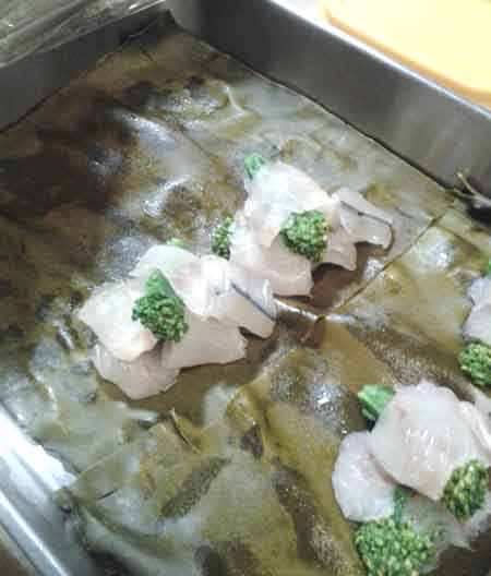 向付    鮃の昆布〆  菜の花昆布〆 山葵  加減酢