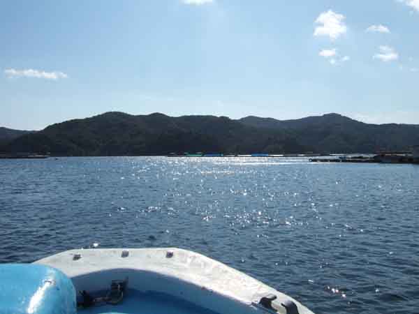 大将の大宝丸で五ヶ所湾中にある鯛の養殖場まで連れてってもらいました。
