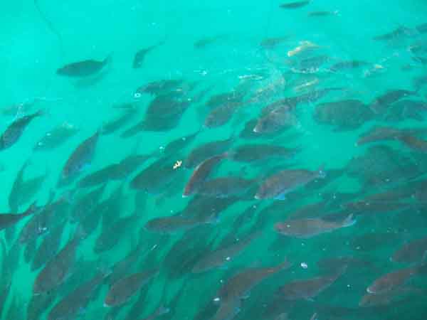 囲った枠あみの中で鯛はぐるぐると回遊してました。