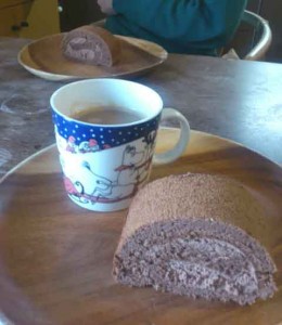 今朝はAのつくったロールケーキで朝ご飯しました。
