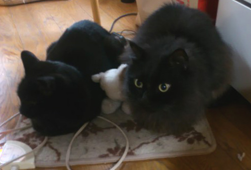 ナイトウくんは寒がりのくっつきたがりで、その相互作用効果で偶然とれた一枚なのよ。
