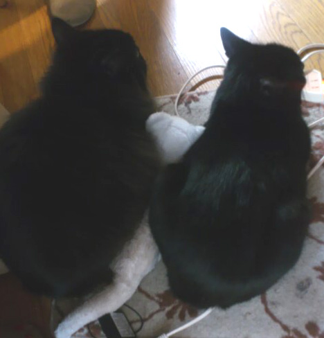 この冬もテーブルの下では、尺角(450□)のホットカーペットの攻防戦いで、毎日取っ組み合いが続いています。