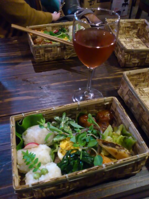 店主がセレクトしたロゼのビオワイン(イタリア)を花見弁当といっしょに味わせてもらいました。ロゼの美味しさを新発見なり!