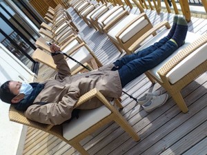 走らない人は、テラスからオーシャンビューをお楽しみ。