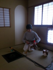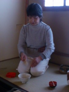 お庭を見ながらお弁当を食べて、包みふくさで濃茶をいただきました。