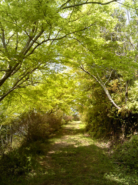 仕事で三重県多気郡大台町の方に行ってきました。伊勢へ移動する途中、通りがかりの神社におまいりをしたいとM2号が言うのでその神社におまいりしその横にある城跡(山城)を見に山道を登り始めるとそこは緑のトンネルでした。鶯と、M2号が”ホーホケキョ”と鳴き声を競う中、新緑春爛漫といった感じでした。