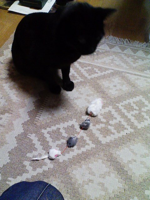 プラスチックの表面になにかの毛皮が張られた”じゃれネズミ”のおもちゃを与えた時なんて、あっというまに毛皮は食べられくっちゃくちゃのチューインガム状態になって、これ以上遊ばせてはいけない(食べてしまう)とおもい、急いで取り上げた事もあった。