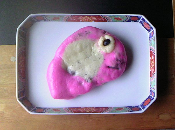 GWにM2号が昔住んでいた岐阜県の家に行っていた時、遊びに来ていたK夫妻が町のお菓子屋さんでこんなオリジナル酒饅頭を買ってきてくれました。鯛らしいんですけど稚魚なのかわかりませんが、これを商品として売る心意気がすばらしいです。