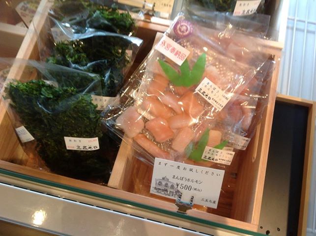 勢乃國屋 豊恩館では、まんぼうのホルモンが売っています。ちょっと珍しい食材です。