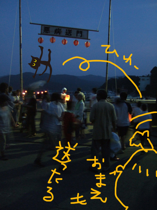 花火をしながら沖へ向かった舟、悪霊もきっと舟にのっていったのかもしれないですね。