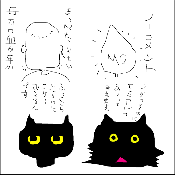 先日実家に寄ったら、M2号の母が “最近は体重は変わらないのに頬がこけて困る”と言っていた。