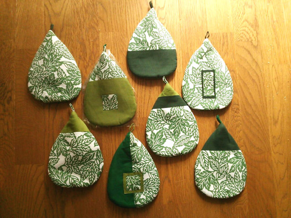 商品提案で鍋つかみを作っていただいた。作り手は+aさんで京都でものつくりをしてる方です。