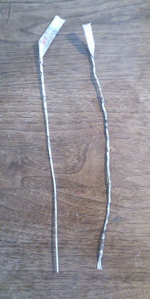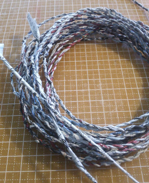1cm×30cmに切って、こよりをつくりねじって紐にしてつなげていきます。