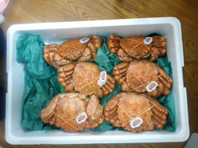 私M1号の甥が北海道で結婚してお祝いを渡したら、蟹が帰ってきました。こんなのをもらったのは初めてです。食べたい人は庄内緑地公園まで食いに来い!!!!ブランド物らしくタグまでついています。