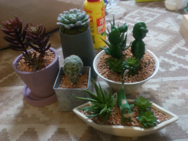 こちらは多肉植物のフェイクの鉢もの。住宅展示場に奉公にだされます。