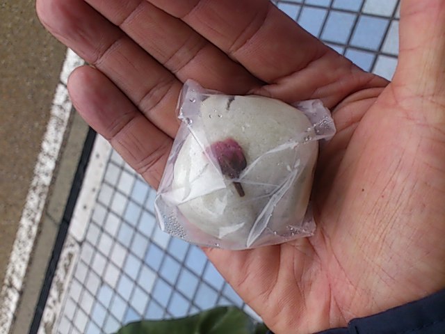 お店の方が申し訳ないねと出来損ないだから売らなっかったという花見まんじゅうを一個手渡してくれました。