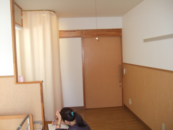 部屋はこんな感じで可もなく不可もないカラーとデザインです。いろいろなものを持ち込んで心地よい空間にしようと思います。