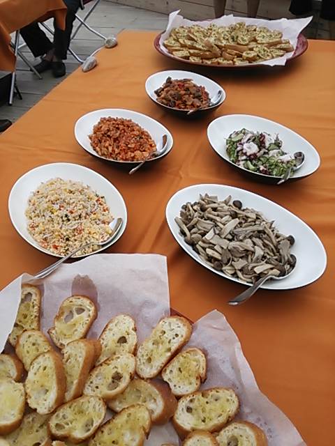 答志島の旅館に携わる人たちが、料理学校の先生から指導を受けて、ブルー・フィールドのアウトドアステージで、答志島の食材を使って新しい観光ビジネス構想のためのモニターツアー第1回目です。