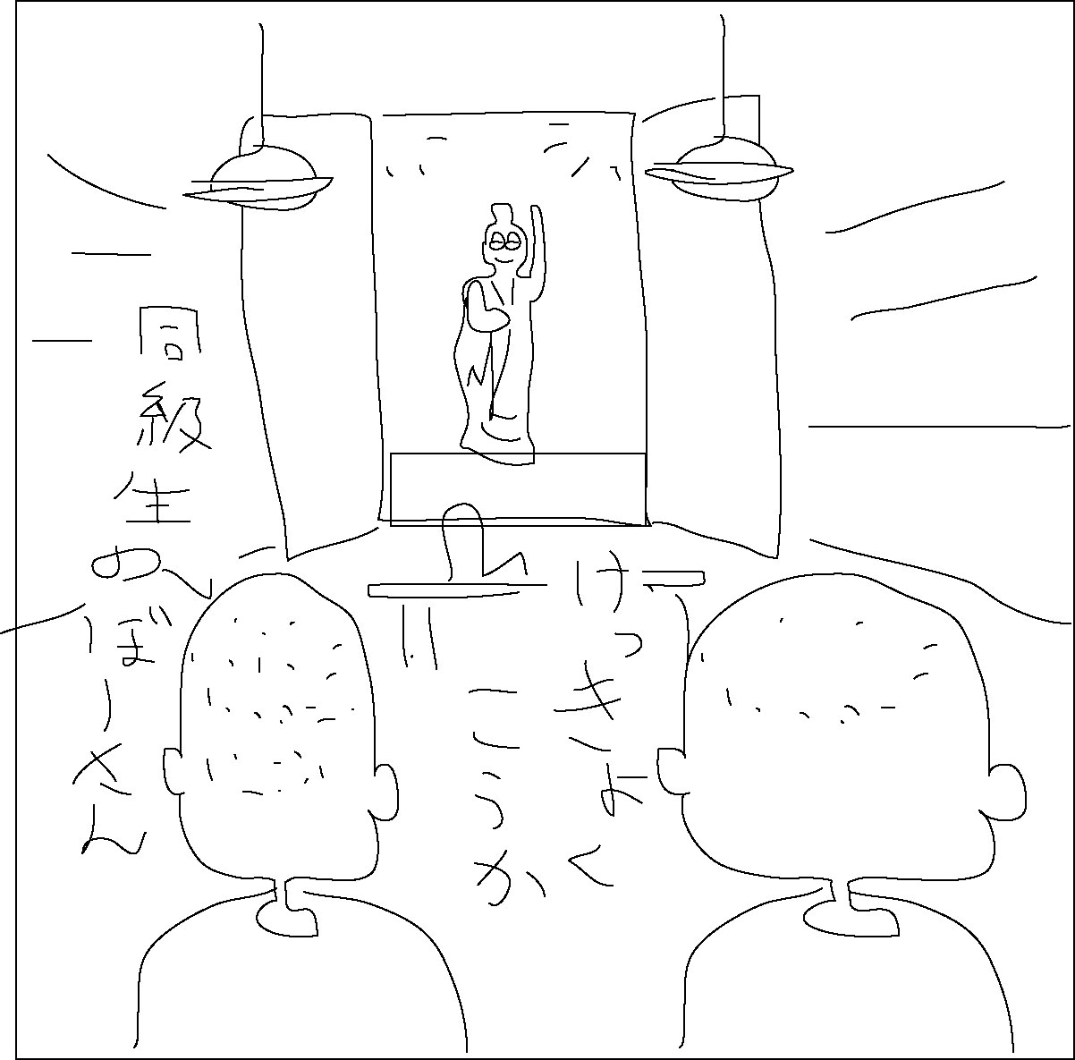 太陽光線の元か、お堂の中なら低いろうそくの光か、また、提灯のように低い高さか迷うところですが結局上部からのぼーとした照明にしました。
