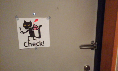 電気を消す!みたいな警告サインを玄関のドアに貼ることにしました。