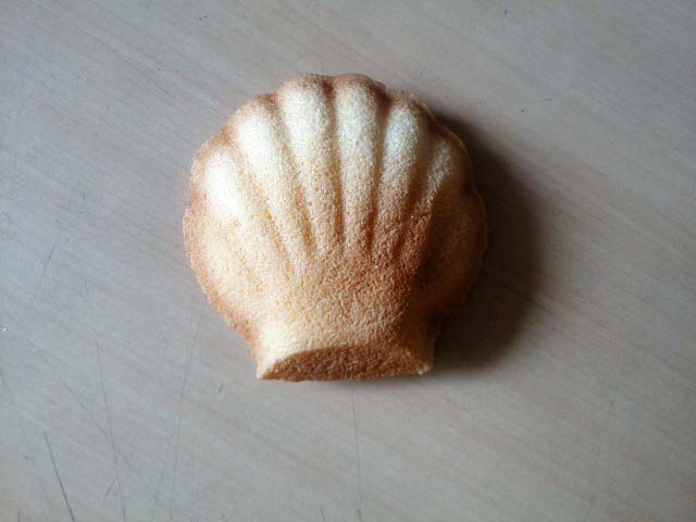 鳥羽のBさんの仕事でマドレーヌの商品サンプルを高浜のPさんところに頼んだサンプルがこれです。一瞬本物と見間違えるような仕上がりです。