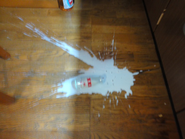 先日朝ご飯の時ネスカフェに牛乳を入れた後ちょっと目を離していると、・・・やられた。