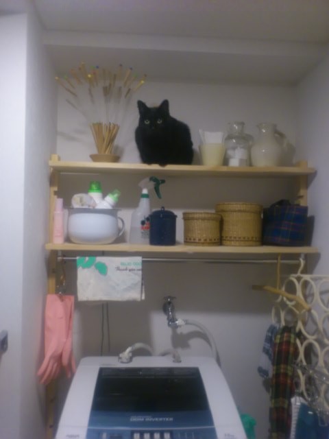 M2号が端の上をきれいに並べているとM4号が棚にのったようでしたがすぐ降りてしまいました。今朝またのったので記念撮影です。