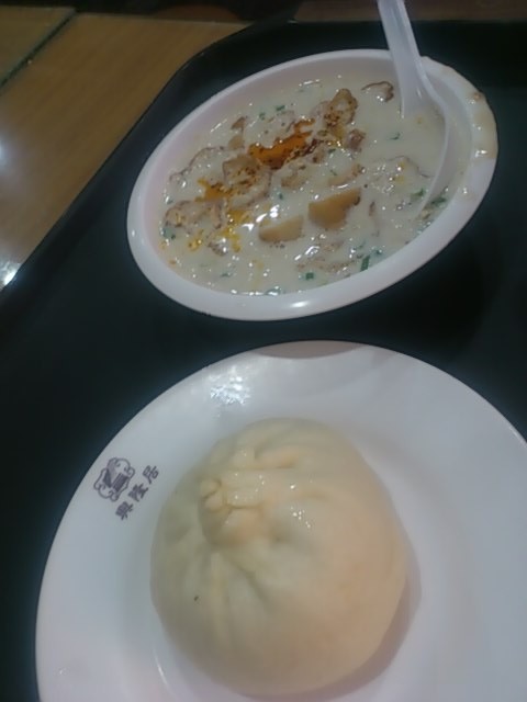 朝ごはんメニューである鹹豆漿(シェントウジャン)を食べて見たかった。家でも時々つくります。豆乳に薬味や酢をいれて食べる温かい豆乳スープです。本場の味をたべてみたかったのです。