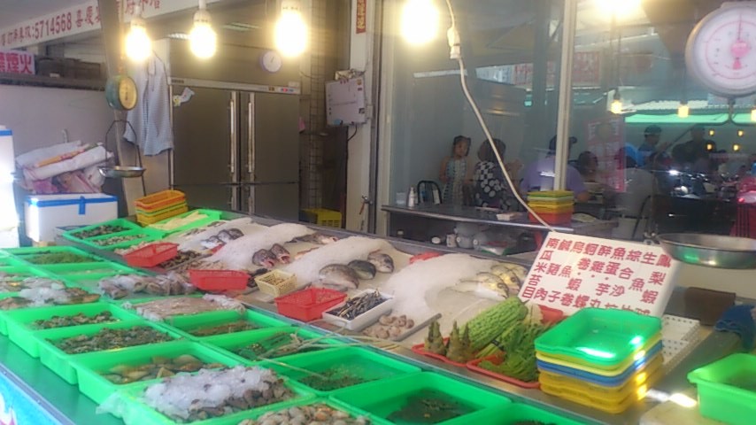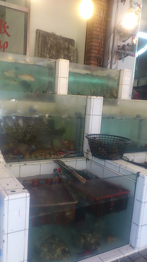 店の入口にいろいろな素材が並べてあるので、食べたいものを選んで焼くか揚げるか煮るかなど調理方法を指示してテーブルに運んでもらいます。アジアのシーフードレストランはこういったシステムの店が多いみたいですね。