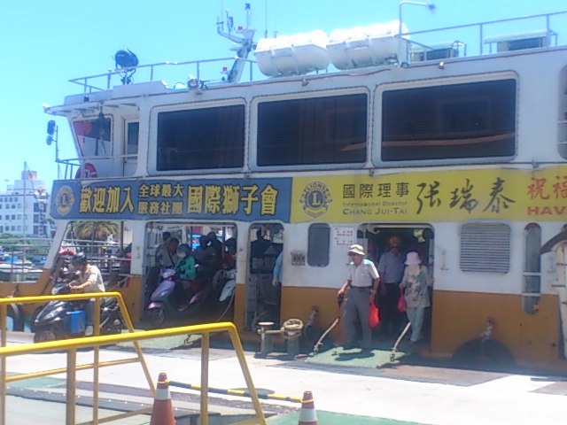 市民は行列つくってこのフェリーに乗り込みます。バイクも人もぎっしりとフェリーに乗ってます。