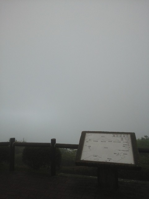 せっかくお金を払って景色のいいところに行っても、霧で見えなかったらどうしようもありません。鳥羽から相差へ行く途中、パールロードの鳥羽展望台の様子を見に行ったらこんなことになっていました。あまりの霧の濃さに、来ていたカップルも“あんまりやなー”と笑っていました。