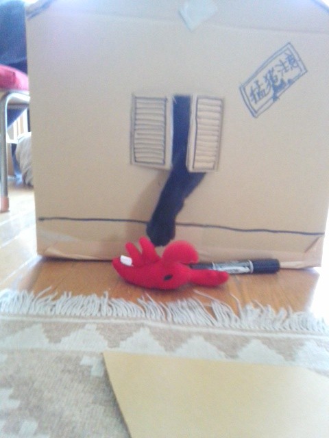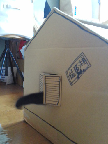 家に大きな段ボール箱があったので、箱好きのM4号のために平屋を建設中です。