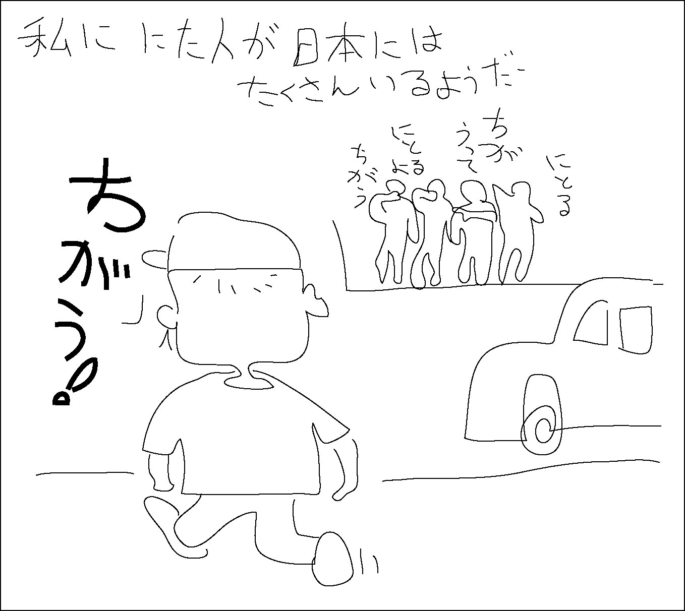 朝散歩に出たとき近所の人が集まって私を見て”にてる、にてる、いやちがう”とか何か言っていました。