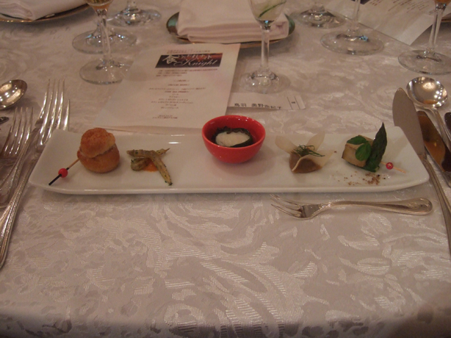 大阪のホテルのフランス料理のシェフが集まって年に一度テーマを変えたコース料理を作るというイベントで、今年は鳥羽の食材をテーマに行われました。こんなにたくさんの料理人が集まって一つのことをやるのですから、厨房の中は大騒ぎだったと想像できますが贅沢な殿様気分になれるイベントです。