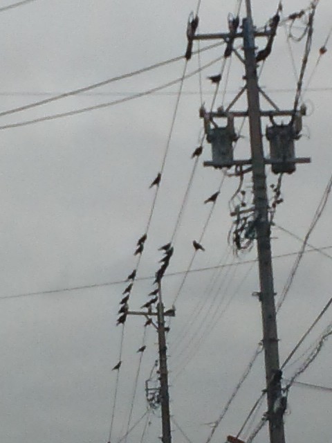 またピンボケ。数日前の朝、いつもよりたくさんカラスが集合していました。