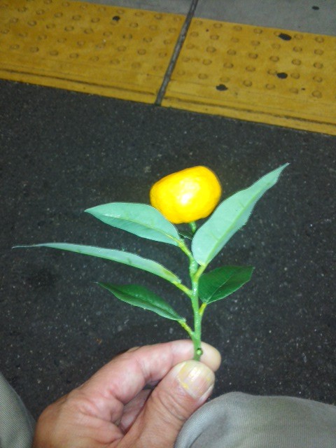11月25日の”やまとたちばなの日”のための店舗でのディスプレイ用に、フェイクのやまとたちばなを作ってもらいました。本物から型をとって樹脂を流し込み塗装して作りました。